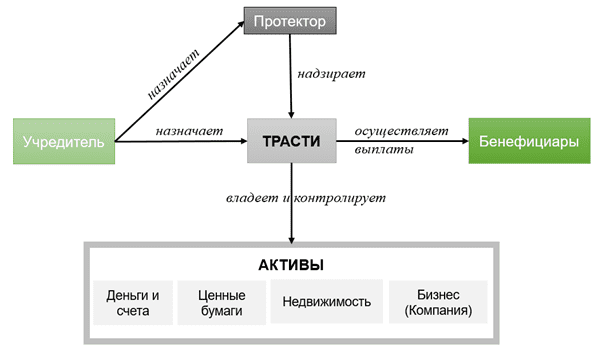 Tout d'abord, il est nécessaire de comprendre le concept de fiducie. Une fiducie est un accord ou un système juridique par lequel une personne (le fondateur de la fiducie) transfère ses actifs à un fiduciaire, qui s'engage à les posséder et à les gérer conformément aux intérêts des bénéficiaires. Lorsque le fondateur de la fiducie transfère ses biens (argent, titres, biens immobiliers ou autres actifs) au fiduciaire, il perd son droit de propriété sur ces actifs. C'est la caractéristique la plus importante d'une fiducie, car elle permet d'exclure les créances patrimoniales, par exemple celles des créanciers du fondateur.